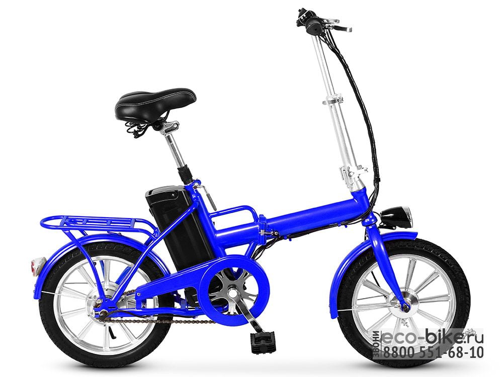 Эта модель имеет множество достоинств. У байка литые диски, а рама выполнена из стали, поэтому велосипед, несмотря на небольшие габариты, способен выдержать внушительную нагрузку до 120 кг. У него небольшие 16-дюймовые колеса, что делает его шустрым и очень маневренным. Конструкция электробайка – складная. В сложенном виде он поместится и в квартире, и в офисе. Его можно без труда перевезти общественным транспортом или в багажнике автомобиля. У электробайка жесткая передняя вилка, но широкое и мягкое седло смягчает езду по неровностям, благодаря амортизирующим пружинам. Велосипед укомплектован задним багажником и крыльями, защитой цепи, парковочной подножкой. Яркая светодиодная оптика (фара спереди и светоотражатель сзади) делают безопасными поездки в условиях слабой видимости.